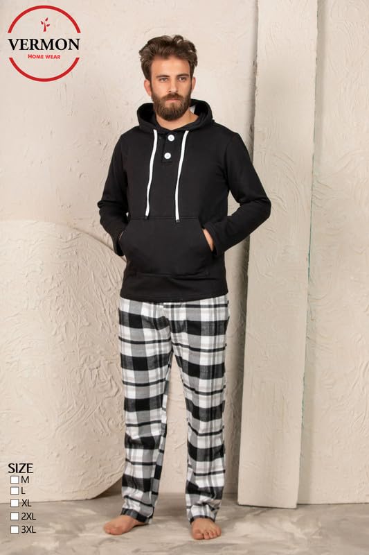 Vermon - فيرمون طقم بيجامة شتوي كاروهات للرجال - مقاس - S1017