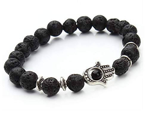 Other - سوار من الحجر البركاني مع كف فاطمة فضي - مقاس 18، للجنسين