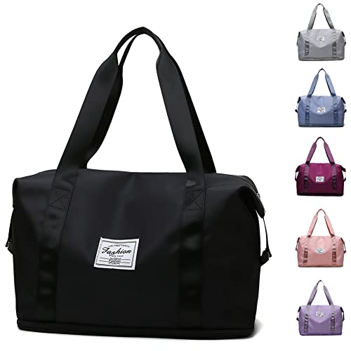 VOKUVIKU - حقيبة سفر كبيرة من فوكوفيكو، حقيبة رياضية قابلة للطي، حقيبة عطلة نهاية الأسبوع لليوغا، السفر، الرياضة, 016 أسود، بولي فينيل كلورايد