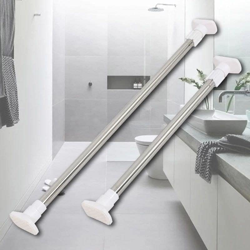 - متعددة الأغراض --- يمكن استخدامها كماسورة ستارة حمام أو ماسورة ستارة أو ماسورة دولاب أو شماعة ملابس. يمكنها حمل ستارة الحمام أو الملابس الثقيلة، وقد تتأثر سعة الحمل بالاحتكاك بالجدار وتمديدها.