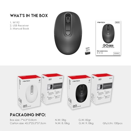 Generic - لاسلكي فانتيك W192، بصمة صامتة، استهلاك طاقة منخفض، دقة 1600 نقطة لكل بوصة (أبيض)