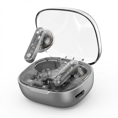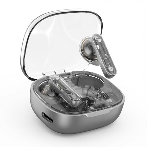 Generic - سماعة ايربودز بلوتوث W38 بصوت هاي فاي ستيريو - وقت تشغيل حتى 4 ساعات - تصميم شفاف للالعاب والموسيقى مع اضاءة ليد ملونة جذابة (رمادي)