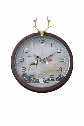 Generic - ساعه حائط (ساعة حائط دائرية بتصميم غزال ذهبي – إطار بني أنيق)