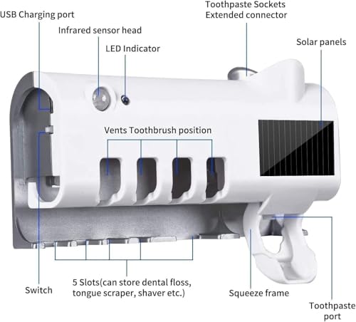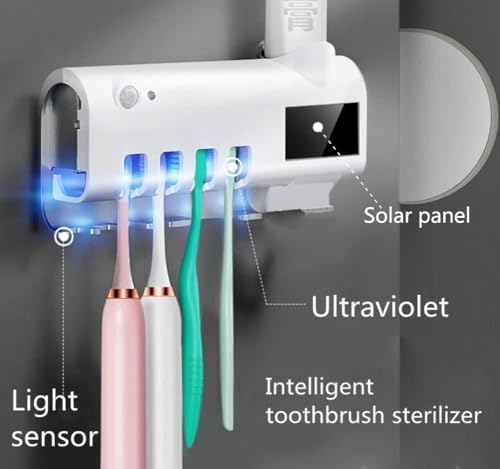 ALI SHIPPING - حامل فرشاة أسنان يعمل بالأشعة فوق البنفسجية يُثبّت على الحائط مع موزع معجون أسنان، معقم متعدد الوظائف لتخزين صحي ومنظم في الحمام