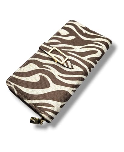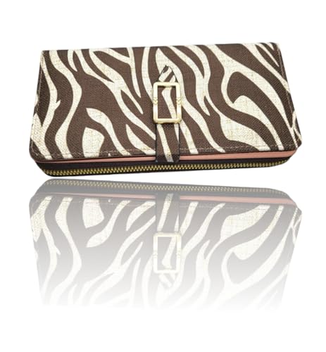 Generic - محفظة للنساء بسعة كبيرة بسحاب واحد ذات سعة حامل بطاقات للهاتف الخلوي بتصميم نمر تصميم أنيق جودة ممتازة بني 2