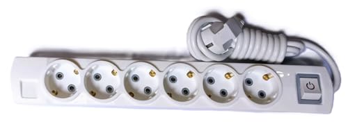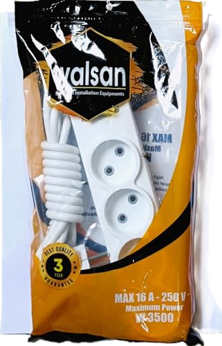Generic - مشترك كهرباء من والسان سلك بطول 2 متر — قدرة عالية 16 امبير، 250 فولت، جودة مضمونة عدد مخرج (6)