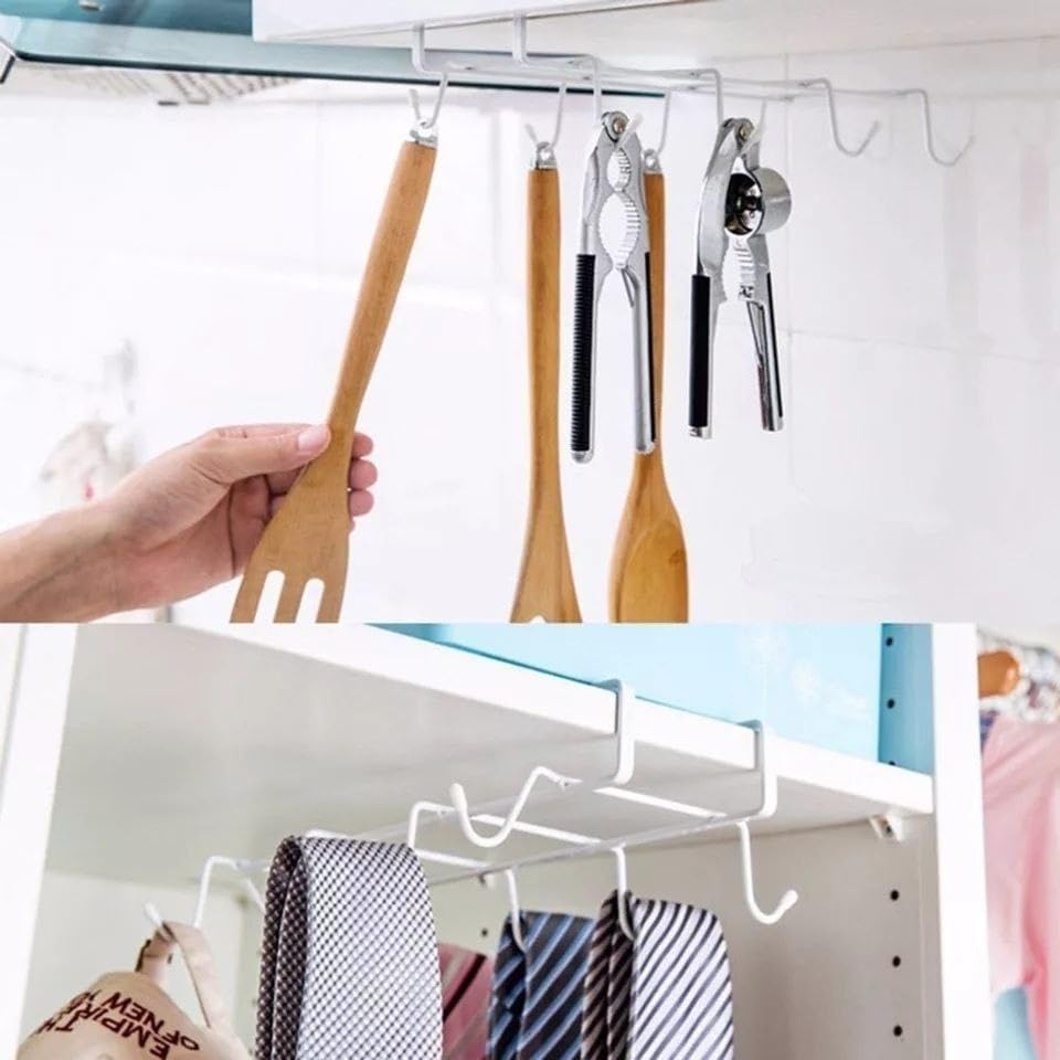Generic - رف خطاف لخزانة الملابس، رف تخزين، رف رف ادوات المطبخ، يحتوي على 10 خطافات للتعليق متعدد الالوان، قطعتين، أبيض، اكاسيا