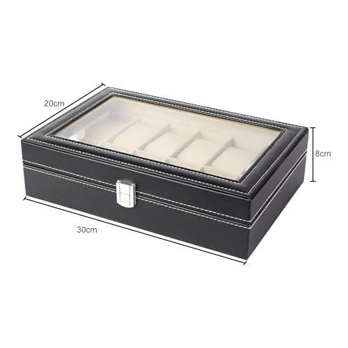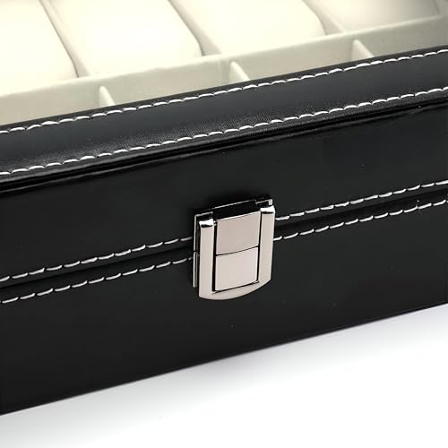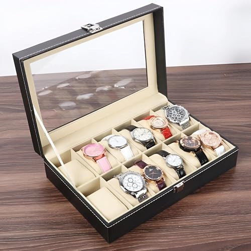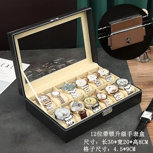 Generic - منظم ساعات - صندوق تخزين مجوهرات من الجلد الاسود الأنيق بـ 12 فتحة، مثالي لاكسسوارات الرجال والنساء، مصنوع من مادة البولي يوريثين السوداء الفاخرة.