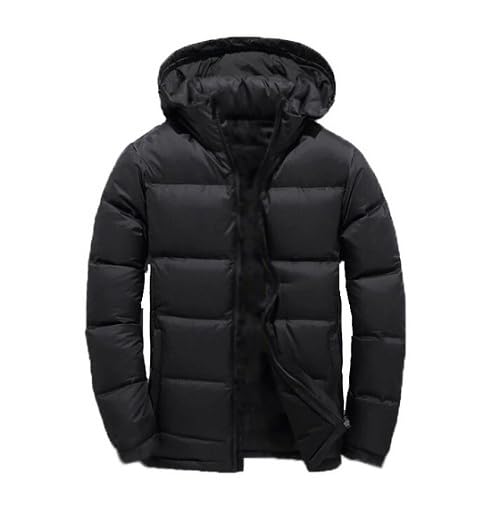 Generic - جاكيت مبطن نفخ مقاومة للماء بغطاء للرأس، كبوت أسود