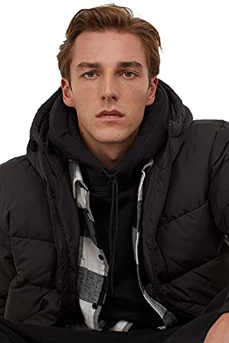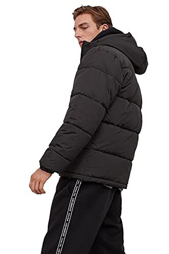 Generic - جاكيت منفوخ بغطاء راس للرجال مقاوم للماء بلون اسود