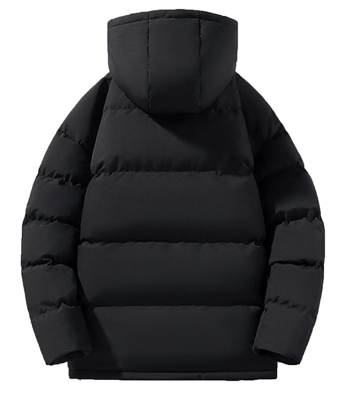 Generic - جاكيت شتوي منتفخ مقاوم للماء بغطاء للرأس، معطف مبطن بالزغب، سحاب كامل، اسود