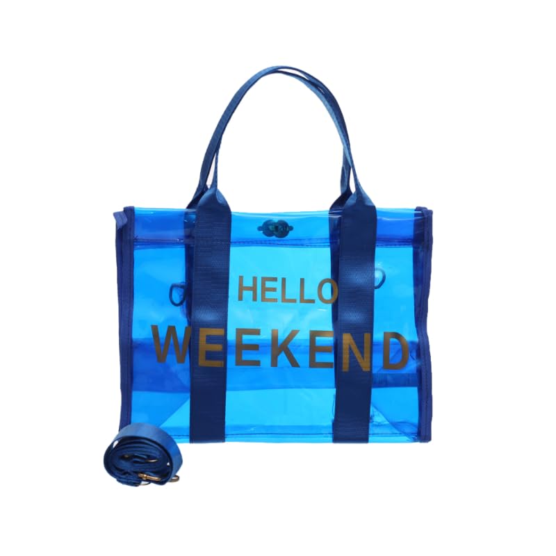 Generic - شنطة بيد علوية مقاومة للماء برسومات حروف بنمط عصري مع حزام قماش للاستخدام اليومي - لون أزرق