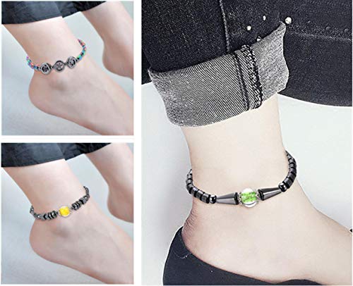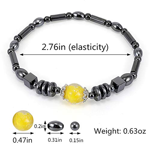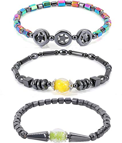 WEFRIN - خلخال مغناطيسي للنساء من الهيماتايت 2021، احجار طبيعية ثمينة ومجوهرات صحية علاجية لالتهاب المفاصل والنفق الرسغي، مجموعة خلخال خرز اسطوانية من ويرين (3 قطع), Small, الهيماتايت