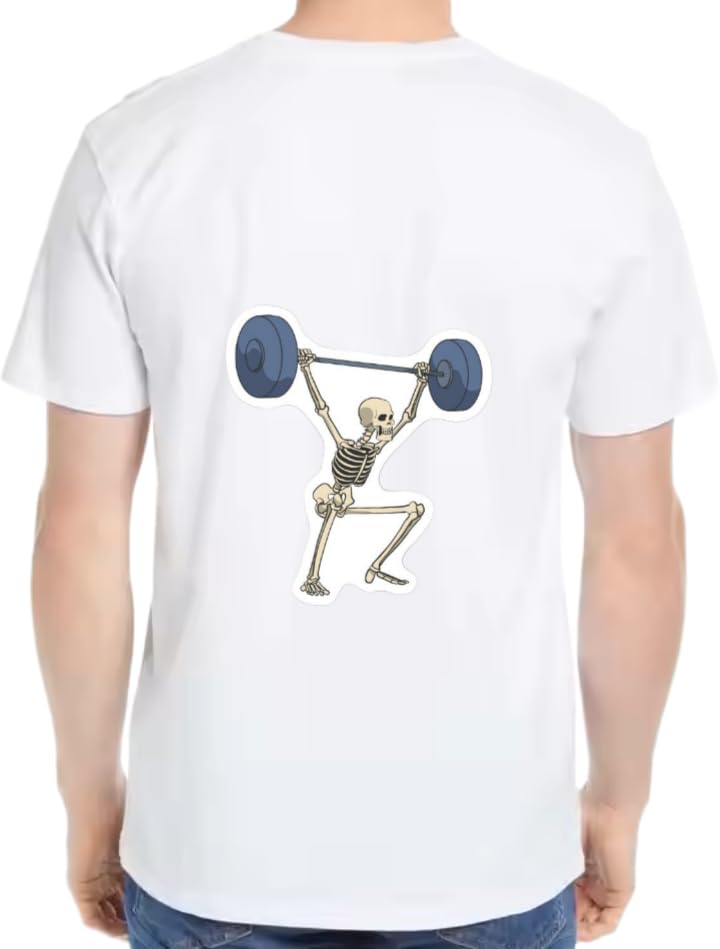 Generic - تي شيرت ظهر بتصميم هيكل عظمي لرفع الاثقال بلون ابيض