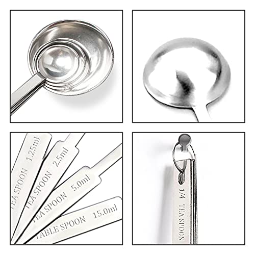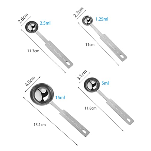 - مجموعات ملاعق القياس - 4 مقاسات: تحتوي على 1/4 ملعقة صغيرة (1.25 مل)، 1/2 ملعقة صغيرة (2.5 مل)، 1 ملعقة صغيرة (5 مل)، 1 ملعقة كبيرة (15 مل)، كل ملعقة محددة بوضوح بقياس مل وملعقة صغيرة وملاعق كبيرة