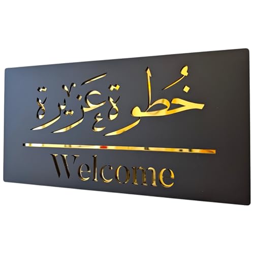 USIGNA - يافطة ترحيبية بتصميم "خطوة عزيزة" بتقنية الإضاءة العاكسة من الأكريليك الألماني، ديكور حائط للمنازل والمكاتب (40×20 سم) (ذهبي)