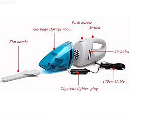 Spaceshoop - مكنسة كهربائية للسيارة للاستخدام الرطب والجاف (12 فولت، 2.4 متر، 120 واط)، أزرق