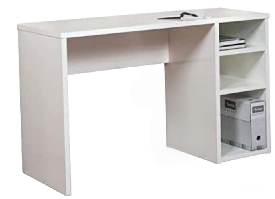 Generic - مكتب كمبيوتر أبيض مع رفوف تخزين جانبية، طاولة عمل للمنزل والمكتب