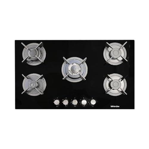 White Line - موقد غاز مدمج من وايت لاين، تصميم بـ5 شعلات غاز، مقاس 90 × 60 سم، مصنوع من الزجاج، مكونات إيطالية، صناعة تركية، بلون أسود، موديل WL-BIH-90GL