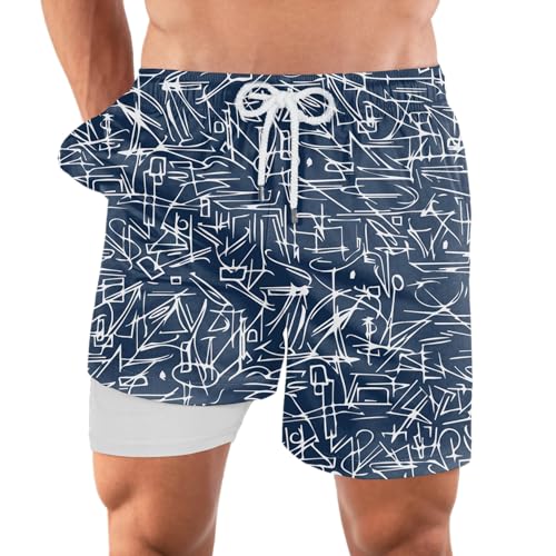 Generic - ملابس سباحة من البوليستر المقاوم للماء بطبعة خطوط بيضاء. للرجال