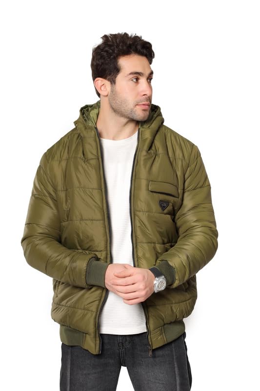 White Rabbit - جاكيت منفوخ مبطن بغطاء للرأس وأساور أكمام وحاشية للرجال من وايت رابيت