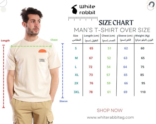 White Rabbit - تيشيرت سهلة الارتداء بأكمام قصيرة ونمط سادة للرجال من وايت رابيت