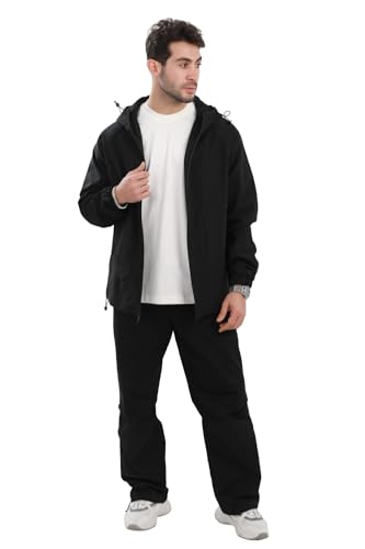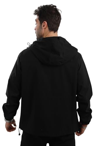 White Rabbit - وايت رابيت جاكيت بغطاء راس ناعم مقاوم للماء للرجال - اسود