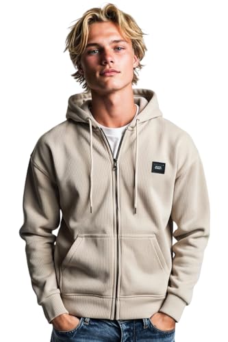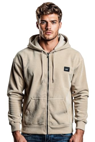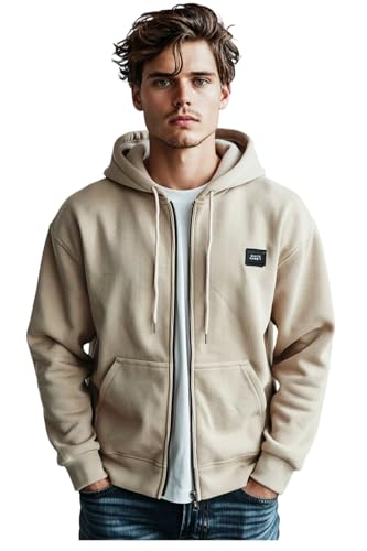 White Rabbit - سويت شيرت بغطاء للرأس وسوستة بتصميم سادة مع بطانة داخلية من الصوف من وايت رابيت، لون بيج