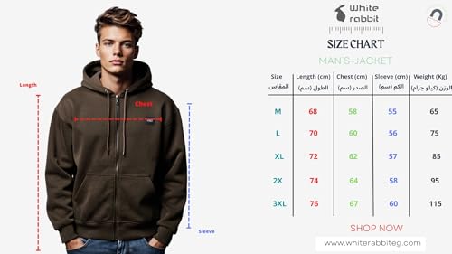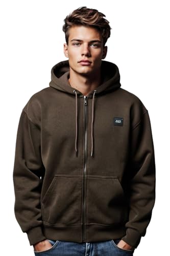White Rabbit - سويت شيرت بغطاء للرأس وسوستة بتصميم سادة مع بطانة داخلية من الصوف من وايت رابيت، لون بني