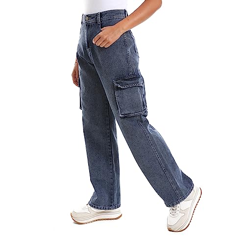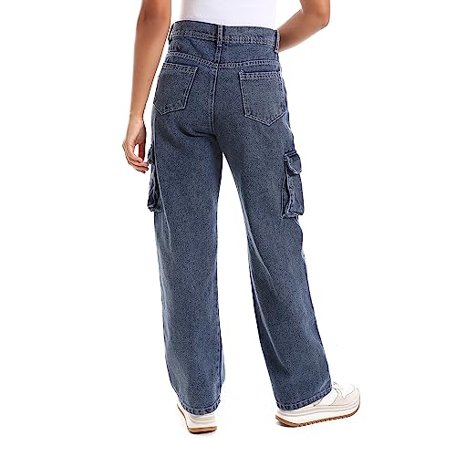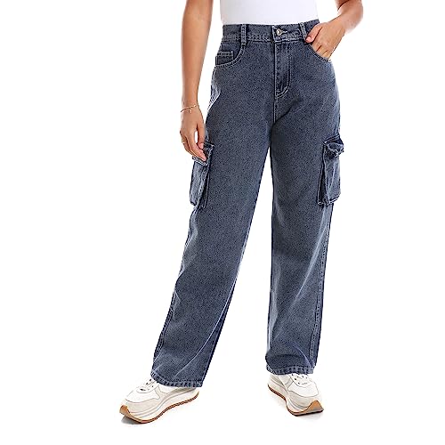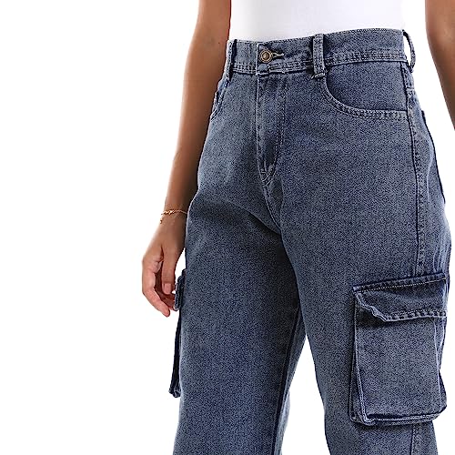 DULLABY - بنطلون وايد ليج كارجو ازرق - للنساء