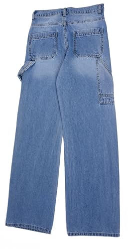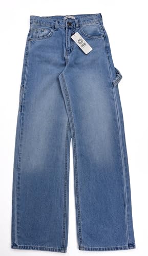 DALY - بنطلون جينز وايد ليج كاربنترغسلة ازرق فاتح مقاس 34