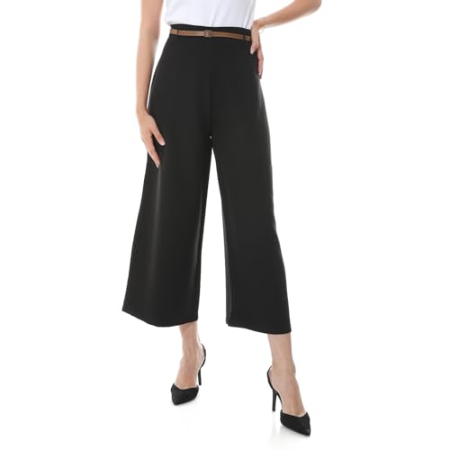 Coctail - بنطلون واسع بالازو قصير بأرجل واسعة وخصر مرتفع مع حزام - 19298