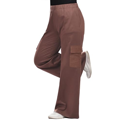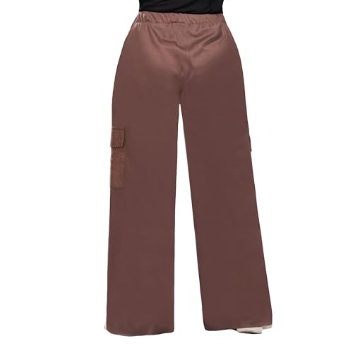 Smoky Egypt - بنطلون كارجو من الشمواه الصناعي بارجل واسعة , للنساء