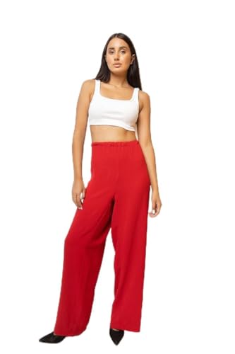 Believe - بنطلون بارجل واسعة مع خصر مرن - نبيذي