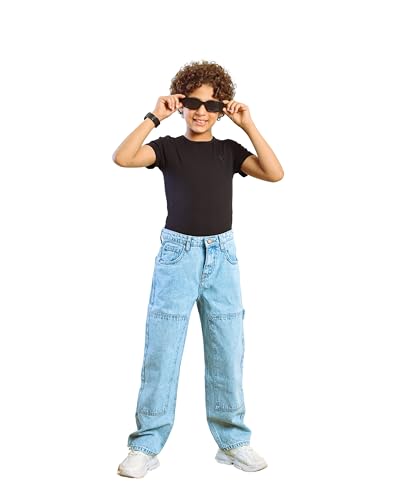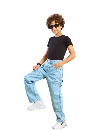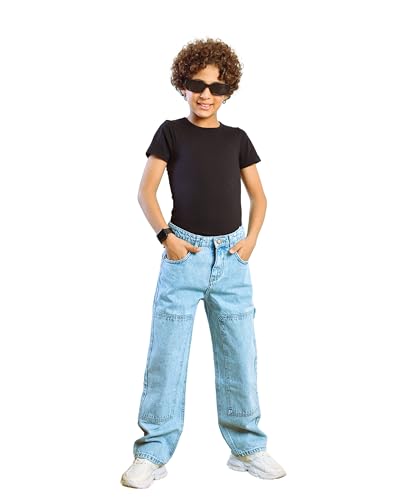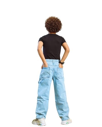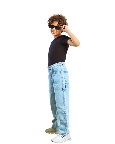 JBS Denim - بنطلون جينز وايدليج كاربنتر اولادى ازرق فاتح اللون
