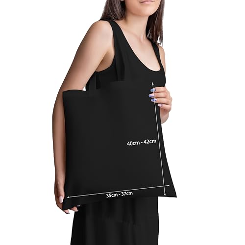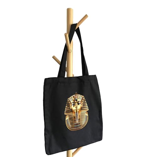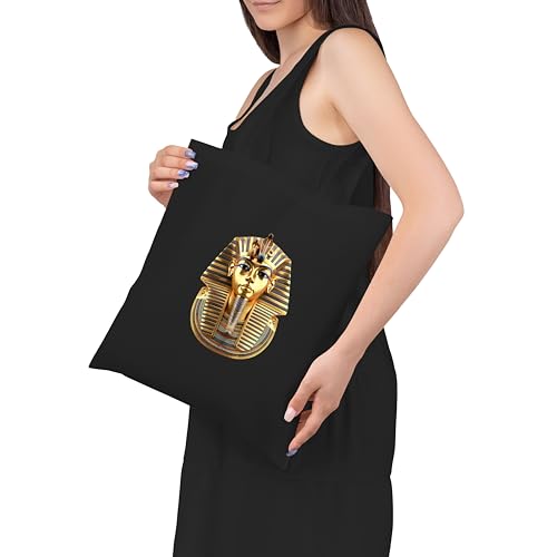 Wilo - ويلو شنطة توت سوداء توت عنخ ذهبية خفيفة الوزن متوسطة الحجم قابلة لاعادة الاستخدام للتسوق والبقالة، هدية