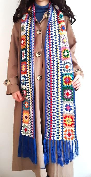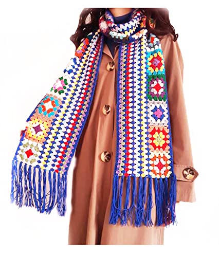 Generic - سكارف أنيق شتوى للبنات -كروشيه -صوف ناعم - حجم كبير -اللون أزرق فى ألوان متعددة