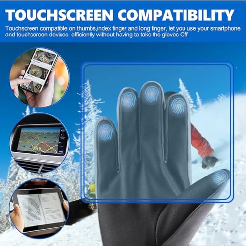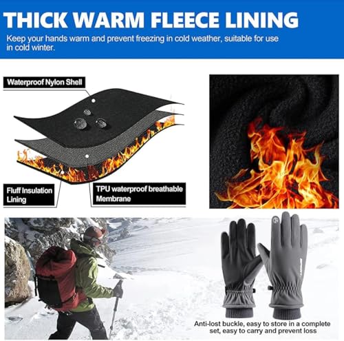 Generic - قفازات ركوب شتوية للشاشات التي تعمل باللمس بتصميم مضاد للانزلاق من المايكروفايبر لتوفير الدفء، مقاومة للرياح ومقاومة للماء ومناسبة للتزلج للرجال والنساء الكبار (رمادي)