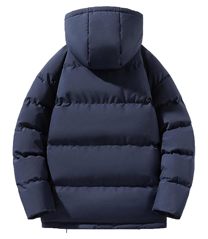 Generic - جاكيت شتوي منتفخ بغطاء للرأس، لون كحلي، معطف مبطن بسحاب كامل