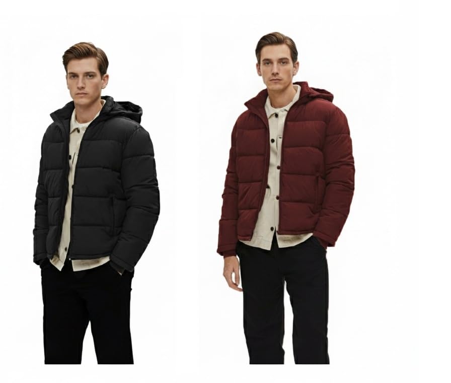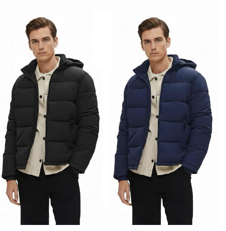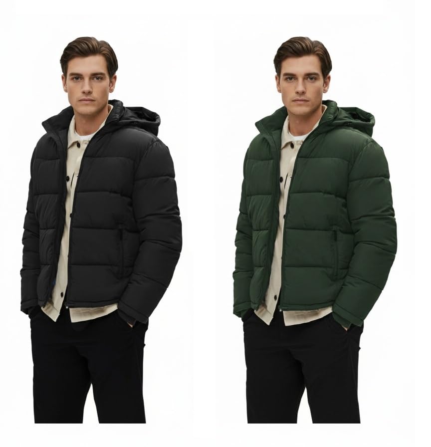 Generic - جاكيت شتوي منفوخ ومبطن بغطاء للرأس مع حزمة، ملابس خارجية كاجوال للرجال