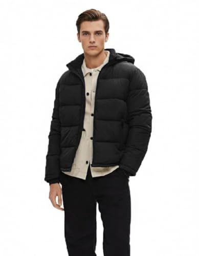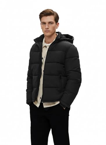 Generic - جاكيت شتوي مبطن يغلق بسوستة مع غطاء رأس قابل للازالة, أسود, L، للكبار من الجنسين