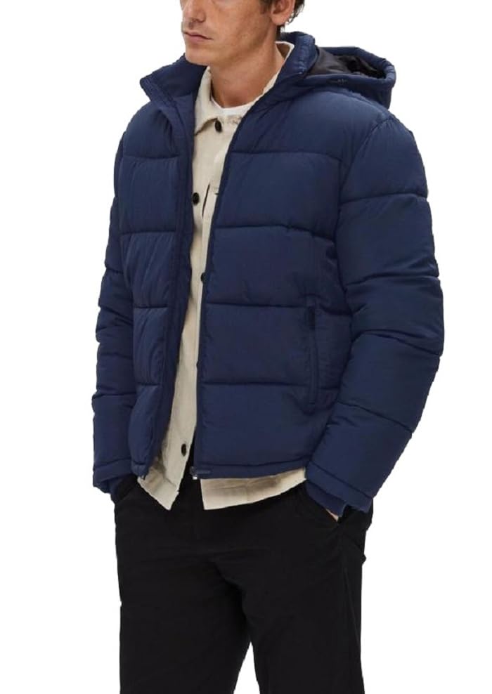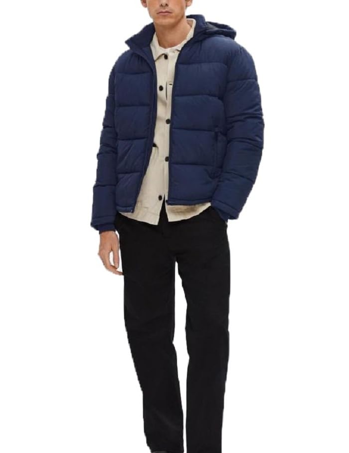 Generic - جاكيت شتوي مبطن يغلق بسوستة مع غطاء رأس قابل للازالة كحلي M ، للكبار من الجنسين