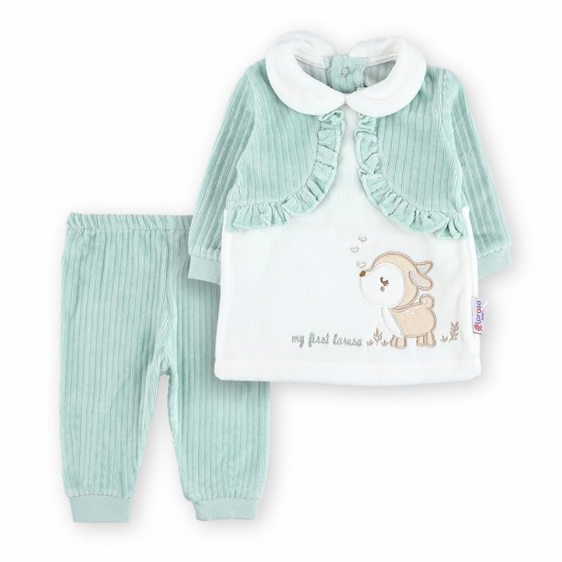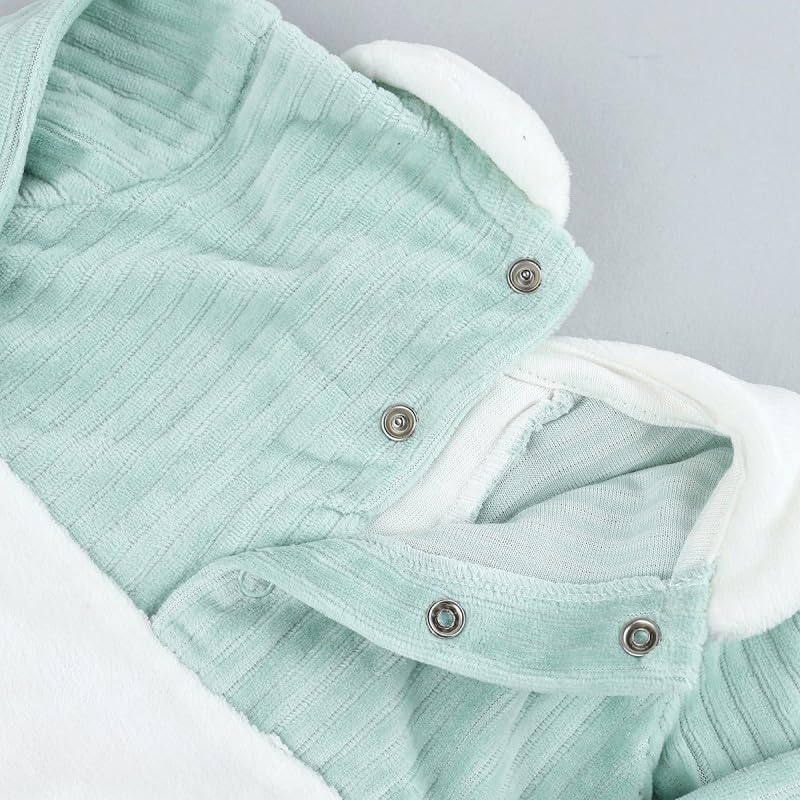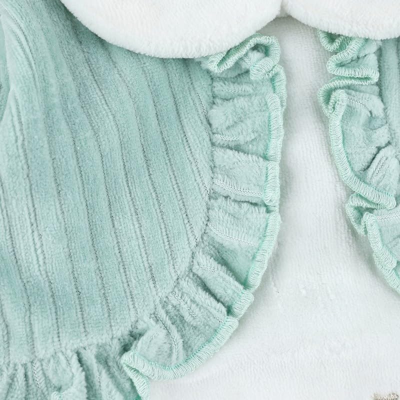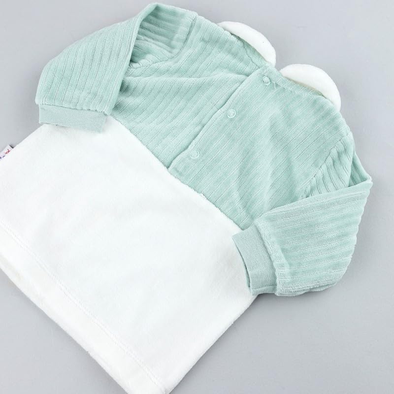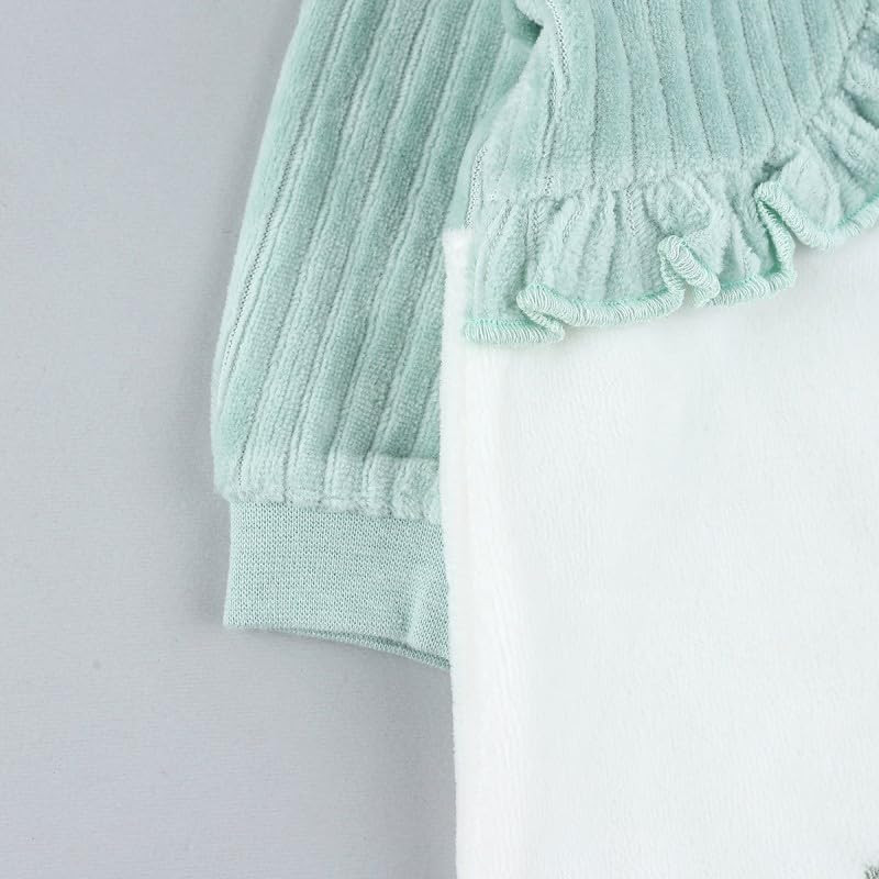 Generic - بيجامة شتوية - صوف ناعم، 9-12 شهر، اخضر في ابيض | ملابس نوم مريحة للاطفال