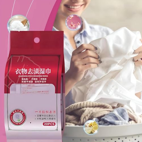 Generic - مناديل وايبس تنظيف الملابس - تزيل بقع الطعام والشراب والحبر - آمنة على جميع الأقمشة - بدون روائح كيميائية - 20 قطعة