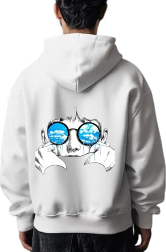 Generic - سويت شيرت بغطاء للرأس وظهر بطبعة انعكاس السماء بلون ابيض