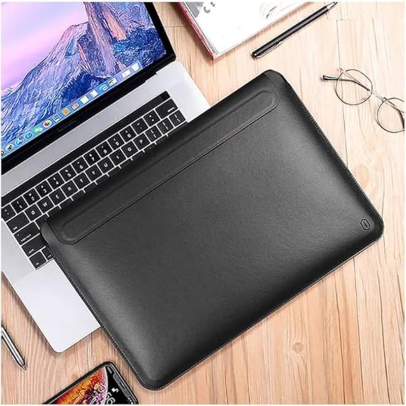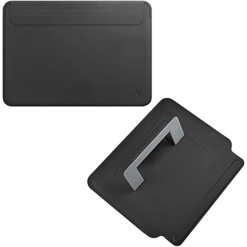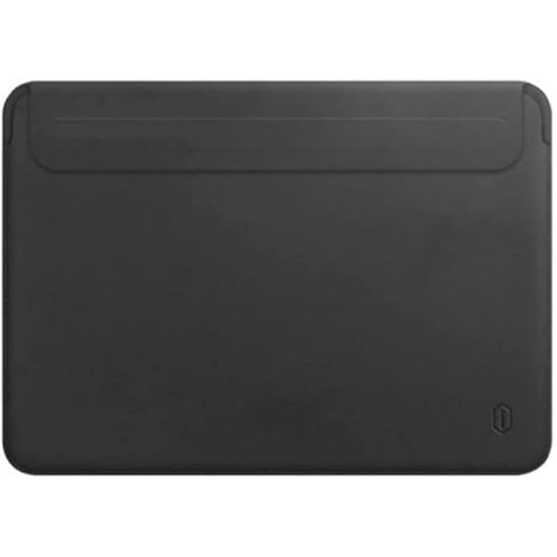 WiWU - حافظة حماية جلد بحامل مع رأس مغناطيسي مصنوعة من البولي يوريثين بتصميم رفيع لماك برو مقاس 15.4 بوصة من ويوو، لون أسود