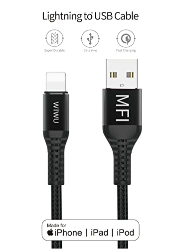 WiWU - كابل لايتنينج إلى USB متوافق مع WP202، كابل بيانات سريع MFI 2.4A، أسود من ويوو- 1.22 م