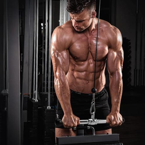 - 💪【مواد عملية عالية】- ملحق جهاز كابلات مصنوع من الفولاذ الصلب عالي الجودة بلمسة نهائية من الكروم المصقول. فتحة 0.6/ 1.5 سم يمكن أن تناسب بسهولة جميع أنظمة الكابلات. مقبض مطلي بالمطاط بارز الملمس، يوفر قبضة مريحة وآمنة أثناء التمرين، ويوفر قوة متوازنة لكلا الذراعين عند ربطه بأي جهاز في الجيم.