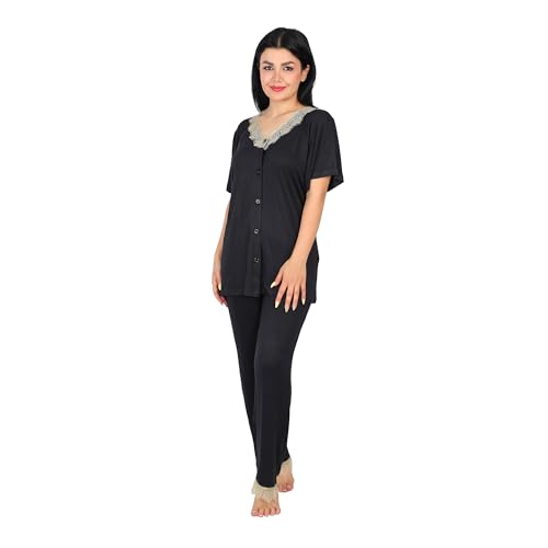 Dadoush - طقم بيجامة كاجوال نسائي قطعتين نصف كم - بيجامة صيفي حريمي مزودة بياقة من الدانتيل لاطلالة اكثر اناقة وأنوثة