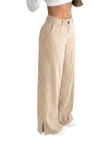 Generic - بنطلون نسائي قطيفة مضلع كود 0118 لون بيج